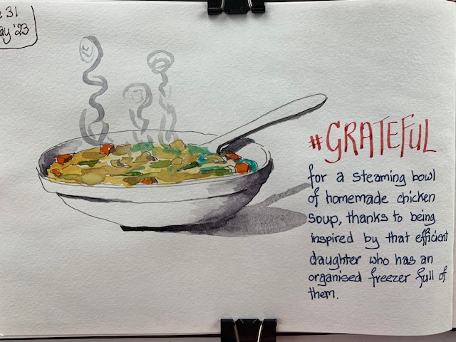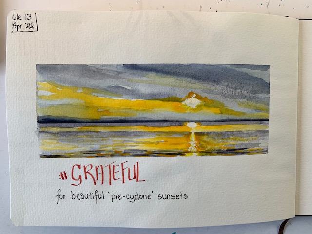 I get that! I, too, added ‘grateful for the sun’ to my list this week, and then noticed an Arabic proverb at the top of the page that said ‘All sunshine makes a desert’. What?!