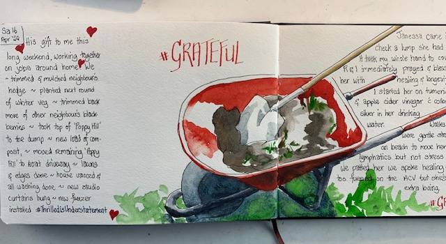 True to his word, he gave me four days. We put up curtain rails in the studio and then hung the curtains. Neighbour’s hedges were trimmed and mulched. Piles of sods left over from previous excavations were removed.The list was long and with each one completed I felt such a joy to finally cross these things off my ‘to-do’ list. #grateful