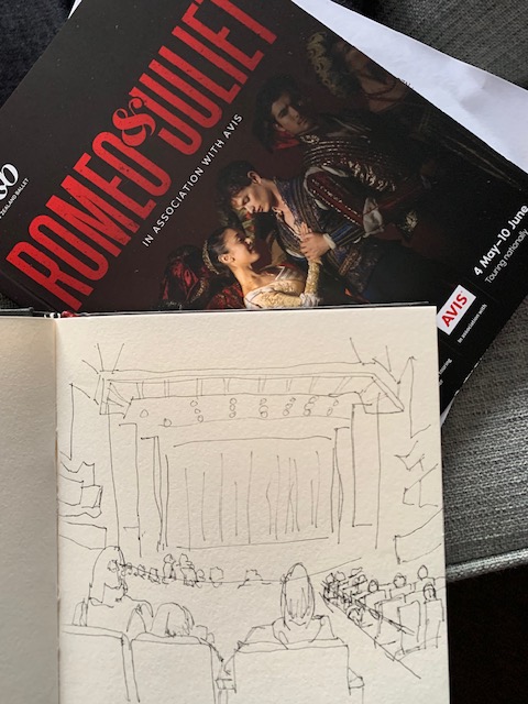 Then came the ballet, and obviously, with the theatre in darkness there’s not a lot of opportunity to draw, but I did get a quick sketch in while we waited for it to start. A good exercise in perspective to get the feeling of depth. And then, amidst all the sumptuous period costumes, scintillating music from the live orchestra, and spectacular story-telling as the characters danced their way across the stage, I had a really random thought. “What if either Romeo or Juliet had had a different mindset?” How would the story have ended then? Perhaps even the parents/families mindset? Could any one of them have changed the whole storyline?
