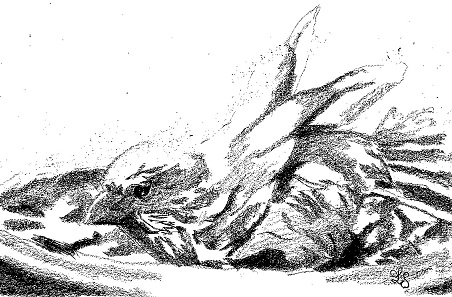 Back down the canary goes for another round, and yet another until all those little fluffy feathers are hanging water-laden and plastered against his tiny body.