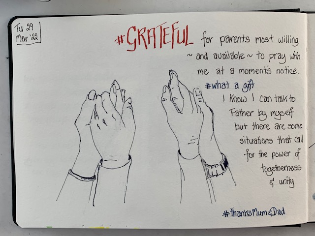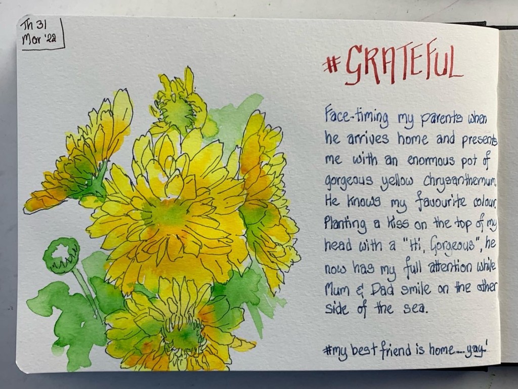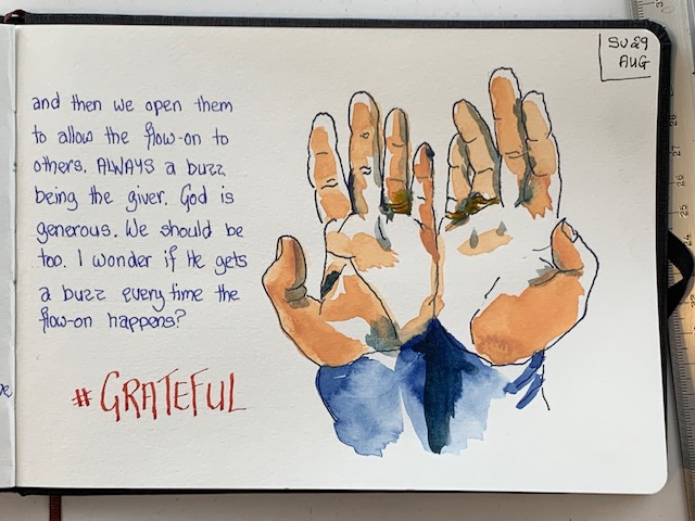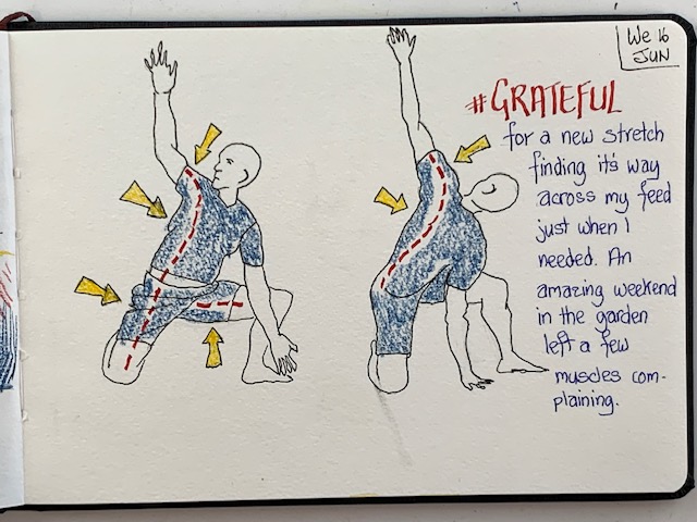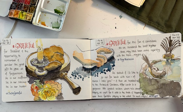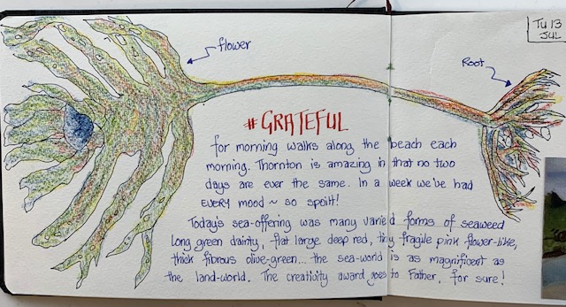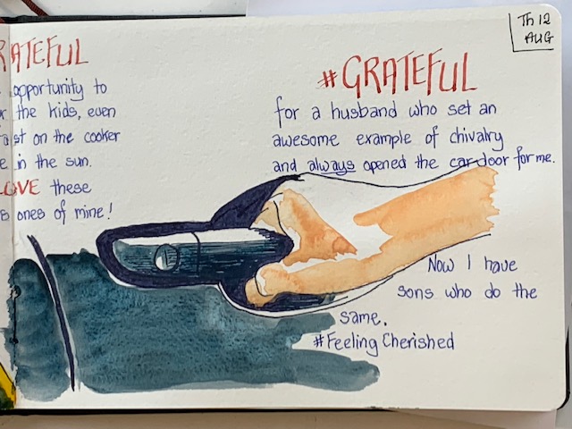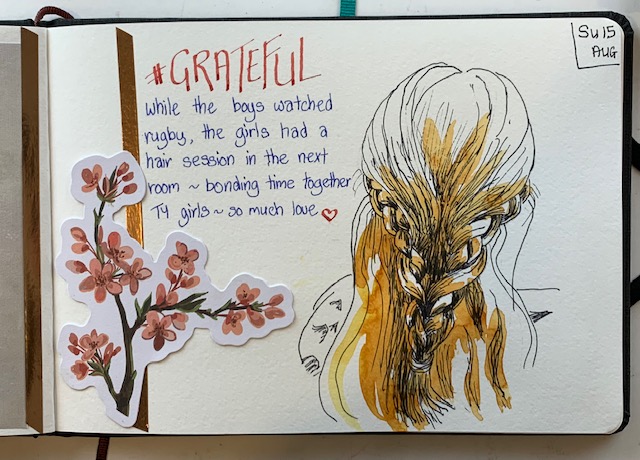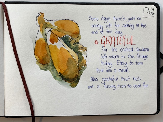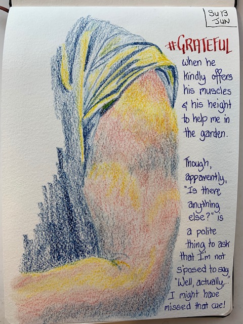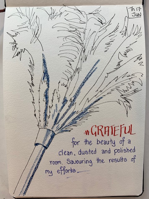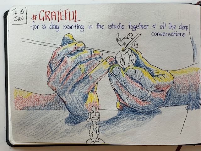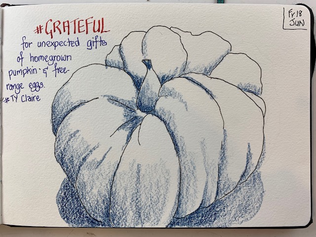 So, to that end, here I am again sharing my grateful drawings from this week (I have kept up diligently with those) and you may get some canvas work coming soon too. Just got to dust off the brushes and work on that discipline. So, adieu until next week …