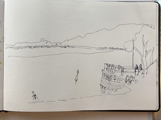 My confidence had taken a knock, so I nursed myself along by allowing pencil so I could erase if necessary and correct. Interestingly, once I had relieved that pressure I did it just fine and didn’t have to erase anything. I was actually really pleased, especially with the shading on the boats.