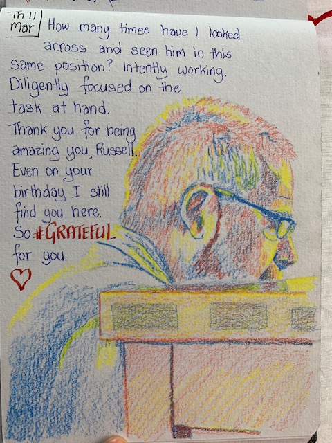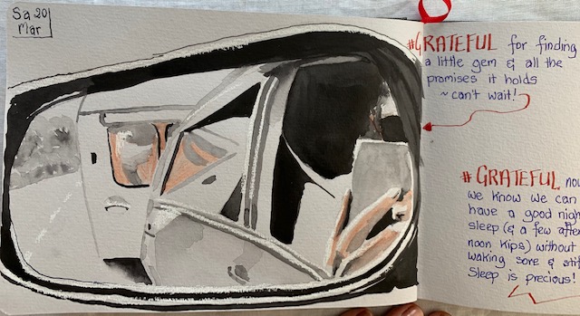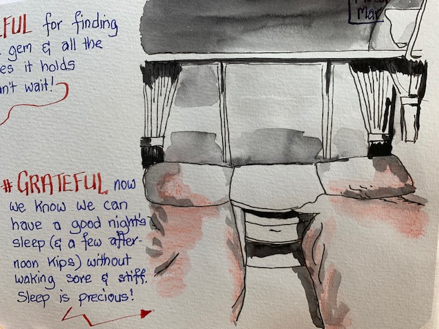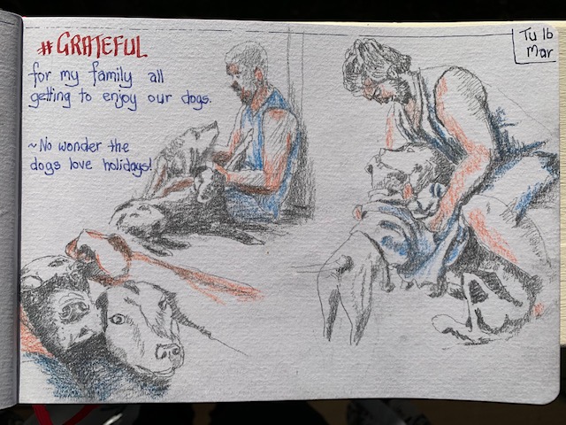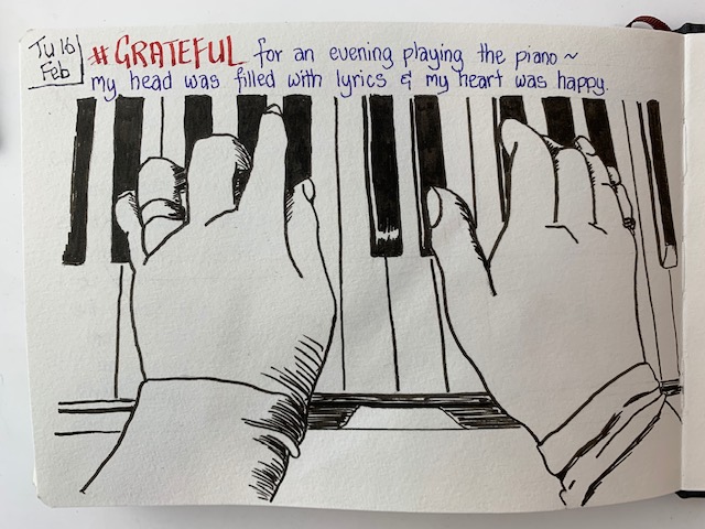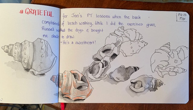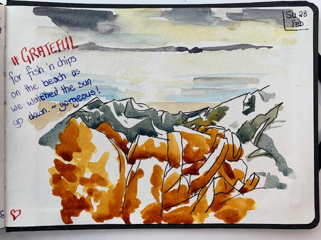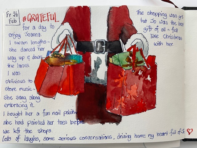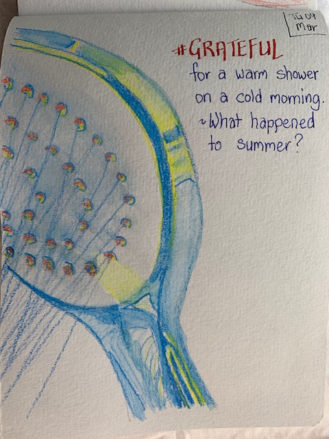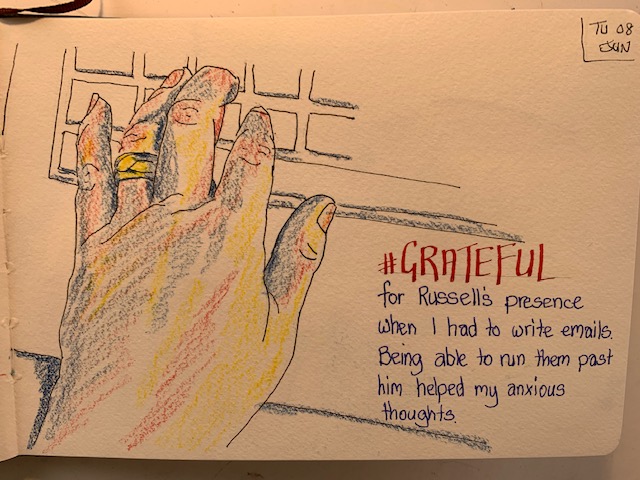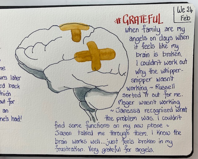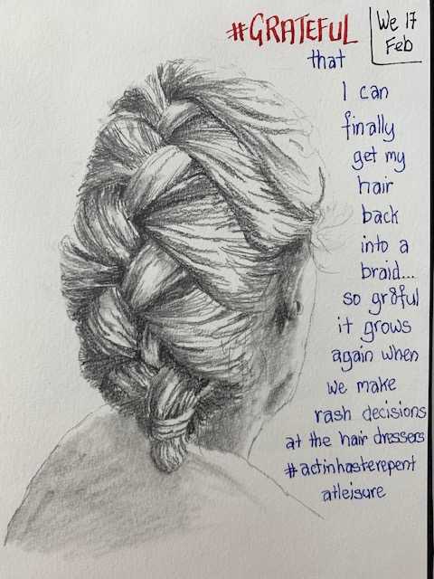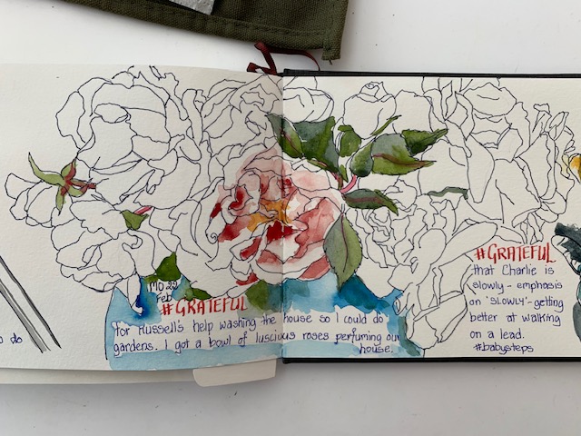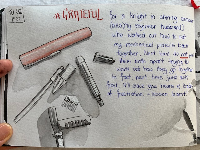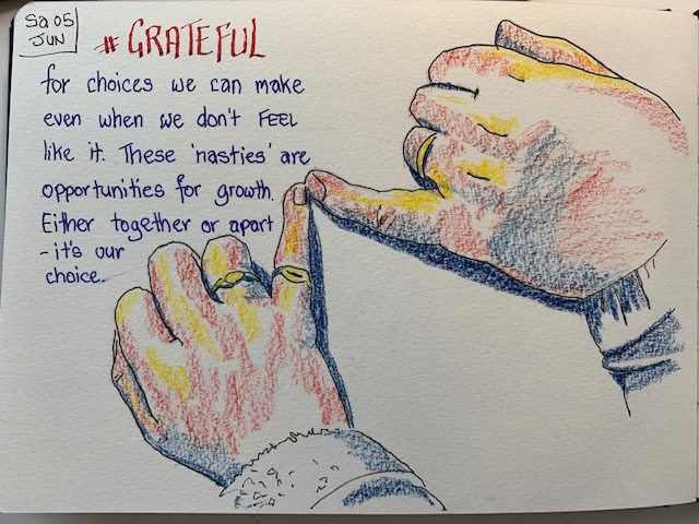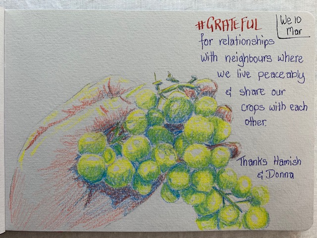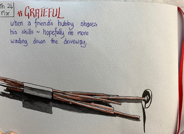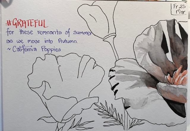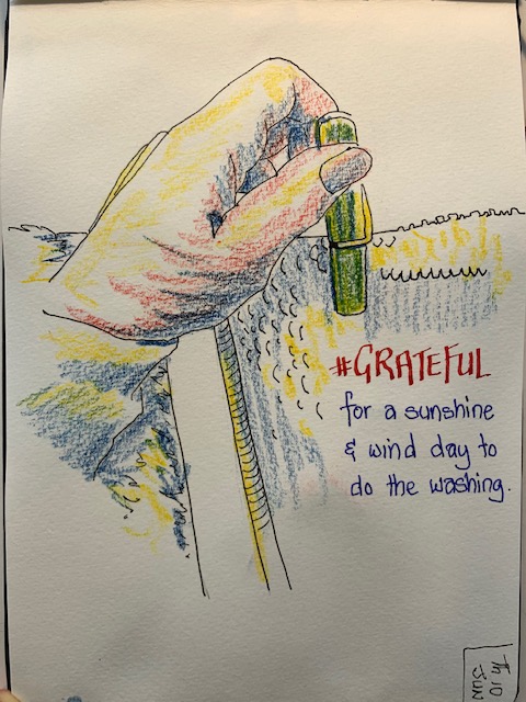 For all the comings and goings of the last couple of months, I have continued with my daily grateful drawings. Perhaps not every day, so a little catchup had to be played along the way. In hind sight I wonder if my mental health might have survived even better if I had been more diligent to do it daily despite whatever was going on. The first day or two that I am remiss I do not particularly notice but after a few days of not being mindful on the daily, I do begin to notice a difference.