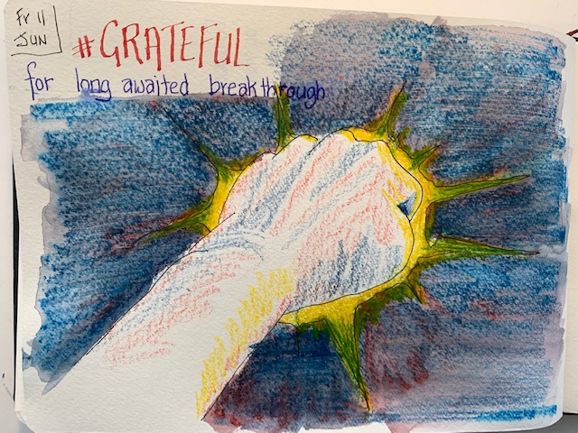So along comes God and asks me to draw something every day that I am grateful for. I’m a pickin’ that He knew I would be having some major mindset shifts to accomplish this task. In order to find the one thing I would draw each day, I decided to make a list of ten things during the day and from those ten choose the one that would become today’s grateful drawing. As we talked about last week, this is dimension 1 of ‘Yada’. To begin to seek out, analyse, investigate. To begin to know the good in my world. But as I continued to do this each day, month in and month out, I began to notice a shift coming in my ‘daily grateful list’. Instead of just things, events, etc., happening around me, I began to put things like ‘Grateful for the sunset…God’s kiss goodnight’ or ‘ Grateful for Freedom…God’s gift’. The author of the good, the reason behind the thing or event, was becoming visible to me. I was moving into the second dimension of ‘Yada’… I was beginning to understand how or why.