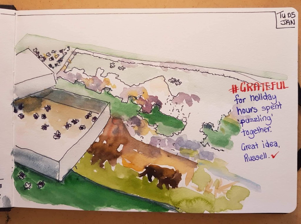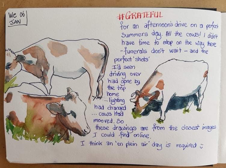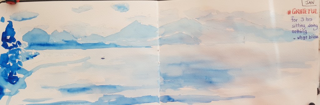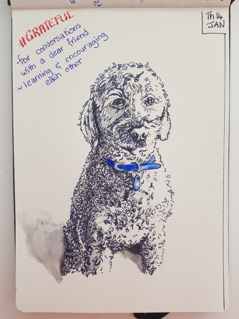 I mulled it round for a couple of weeks as it seemed a bit odd to me really. First off, what was I grateful for enough to draw it? To spend that time and effort on? Secondly, my drawing skills were ok but not that good. Thirdly, what if I had a down day, a real Eeyore day? What if there was nothing to draw? Fourthly, I wasn’t very good at long term things. What if I forgot? Fifthly,… you get the gist that I had a long list of reasons why not to do this.