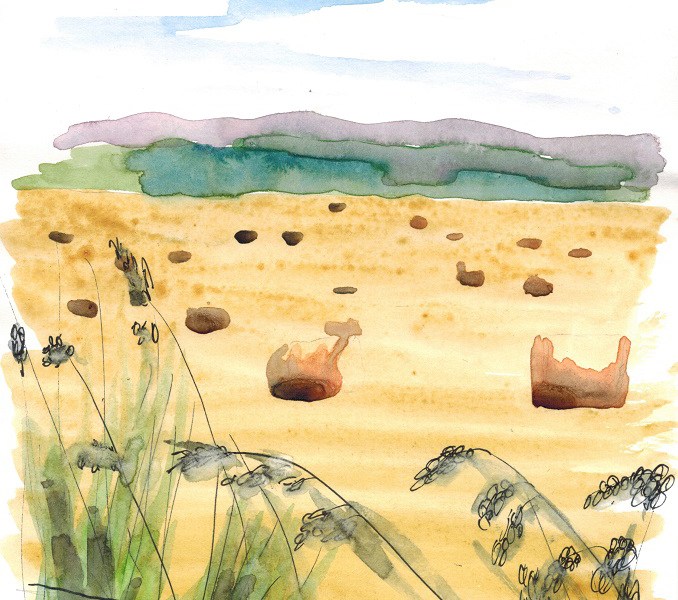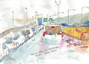 All lined up waiting in your queue for the boarding call…what to do? Sketch! Cars all sitting nicely still in rows while I look at perspective and ratios. Little water jars sitting serenely on the dashboard awaiting my brush. No hurry. “Keep it loose”, she had said. I try. My darling dearest with eyes closed […]